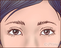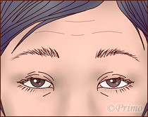 It is difficult to open the eyes and the amount of the iris that we can see is smaller.There is also a tendency for some lower eye sclera to be seen.To lift the eyebrows, the distance between the eyelashes and the eyebrows increases.Wrinkles also appear on the forehead.