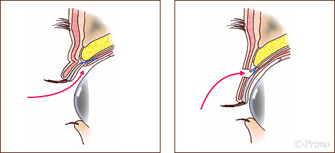 - The back side (conjunctival side) approach leaves no scar on the skin.